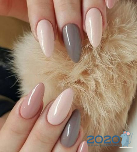 Im Herbst 2019 und im Winter 2020 wird, wie auf dem Foto zu sehen ist, der beliebteste Nagellack auf mittleren Längen sein. Unter den beliebtesten Formen ist zu erwähnen: