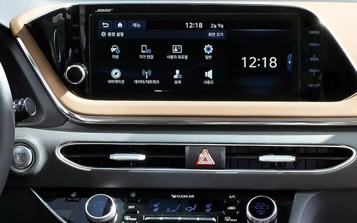 Das Multimedia-System wird auf höchstem Niveau erstellt - es wird durch Berühren oder Gesten gesteuert. Auf diese Weise kann der Fahrer auf einfachste Weise mit dem Auto interagieren. Dafür gibt es auch zwei Monitore mit einer Diagonale von 10,25 ″. Darüber hinaus sind sie nahtlos miteinander verbunden und bilden einen einzigen Block. Wenn der Besitzer des Sonata 2020-Fahrzeugs ein Telefon mit NFC-Technologie besitzt, kann das Smartphone nach der Installation einer speziellen Anwendung als Schlüssel verwendet werden.