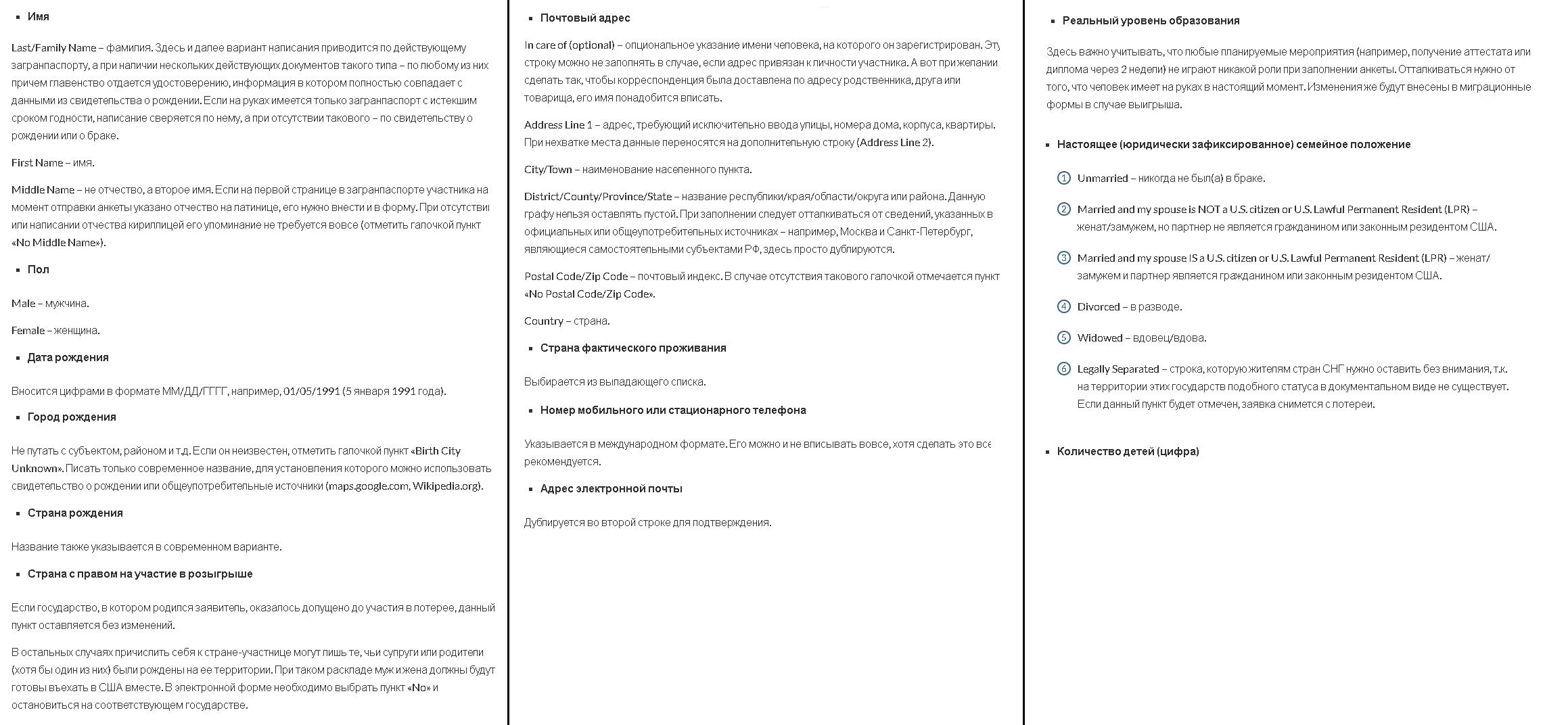 - Staatsbürgerschaft im Mitgliedsland der Lotterie (die Russische Föderation sowie andere Länder des postsowjetischen Raums sind in dieser Liste enthalten);