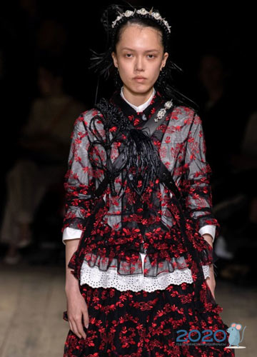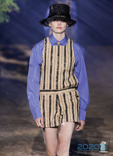 Unter den vielen bekannten und den Fashionistas vertrauten Variationen gibt es 2020 frische Designideen. Also schlägt Simone Rocha vor, eine transparente Bluse in Weiß zu tragen, Victoria Beckham, um ein Herrenhemd mit einem transparenten Golfnetz und einer klassischen Jacke zu kombinieren, und Louis Vuitton, um den Look mit einer leuchtend glänzenden Weste zu ergänzen.