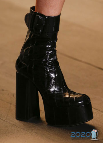 In der Herbst-Winter-Saison 2019–2020 lohnt es sich, über Stiefeletten auf einer Plattform nachzudenken, die in den 70er-Jahren des letzten Jahrhunderts in Mode gekommen ist, die Antitrendlisten jedoch noch nicht aufgefüllt hat. Präsentiert in neuen Interpretationen - elegant, brutal oder elegant - ist es zum Hauptmerkmal von Disco- und Glam-Rock geworden und hat sich natürlich den Bedürfnissen moderner Trendsetter angepasst.
