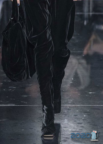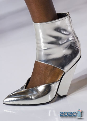 Ein weiterer Trend sind Schuhe mit einem quadratischen Umhang. Solche Stiefeletten waren im vergangenen Jahr in Mode gekommen, aber auch in dieser Saison waren sie in großer Zahl auf den Laufstegen zu sehen. Dies zeigt, dass die minimalistischen Modelle mit eckiger Nase moderne Fashionistas sehr mögen.