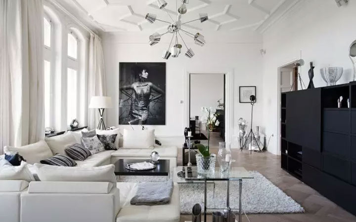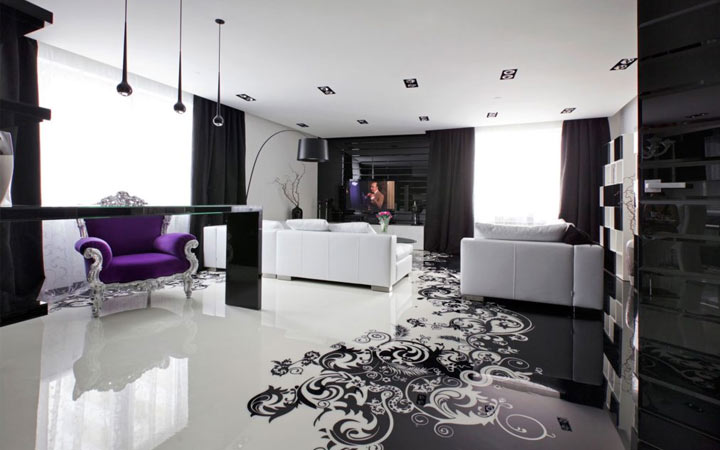 Liebeskontrast - wählen Sie eine monochrome Farbskala. Schwarz-Weiß-Interieurs sehen immer sehr beeindruckend aus, erfordern aber gleichzeitig viel Aufmerksamkeit.