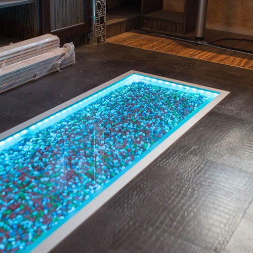 Wenn die Beleuchtung von Decke und Wänden eine klassische Technik ist, die heute niemanden überraschen wird, dann ist der in den Boden integrierte LED-Streifen eine frische Lösung, mit der Sie eine besondere Atmosphäre im Raum schaffen können.