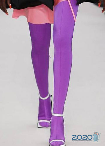 Eine bewährte Methode, um die Herbstmilz zu vertreiben, besteht darin, sich etwas Außergewöhnliches zu besorgen, das dem Bild eine positive Stimmung und eine stilvolle Note verleiht. Stilvolle Strumpfhosen in allen Regenbogentönen könnten zu diesem Ding werden. In der Saison Herbst-Winter 2019-2020 empfehlen Stylisten modischen Frauen eine synthetische rosa Farbe im Stil der Ästhetik der 80er Jahre, Neonrot, Lila, Orange, Gelb, Grün usw. Hauptsache die Strumpfhose ist undurchsichtig und undurchsichtig, die Farbe durchsichtig sieht einfach schrecklich aus, außerdem ist dies ein klares Abzeichen.