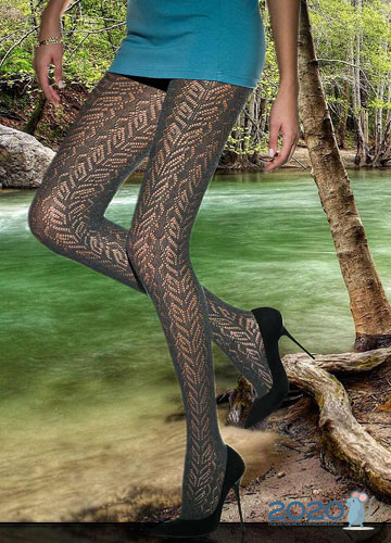 Immer noch beliebt und Strumpfhosen, die Strümpfe imitieren. Zum Beispiel sehen die Modelle wunderschön aus, im Bereich der Hüften befindet sich ein elegantes Lochmuster. Er ist es, der die Illusion klassischer Strümpfe erzeugt, die bei kaltem Wetter nicht sehr angenehm zu tragen sind.