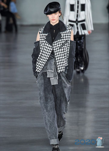 In der Saison Herbst-Winter 2019-2020 empfehlen Stylisten, modische Schleifen auf der Basis von stilvollen Jeanshosen, Röcken und Overalls zu kreieren, deren stilvolle Ideen in Kombination mit anderen Dingen auf dem Foto präsentiert werden.