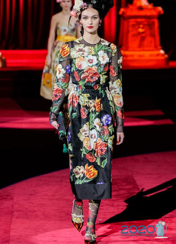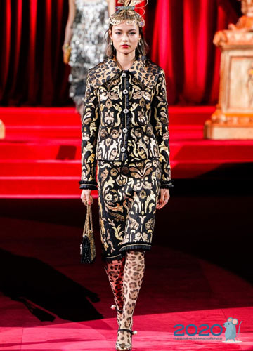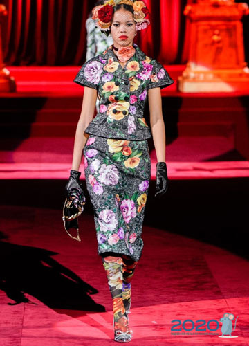 Traditionell sommerlich blühende Farben finden Sie in den Winterkollektionen von Dolce & Gabbana. Luxuriöse Kleider, spektakuläre Jacken, modische Hosen und andere Elemente mit voluminösem Blumendekor wie auf dem Foto werden ebenfalls in Mode sein.