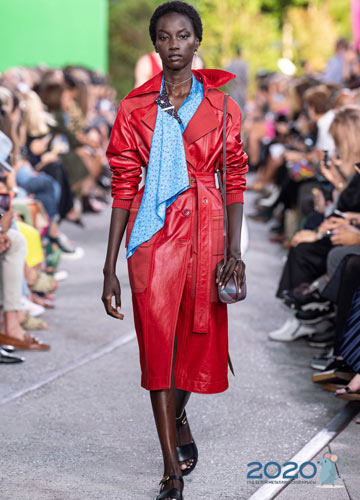 Neben den klassischen Zweireihermänteln bietet die Modesaison Frühjahr 2020 viele Alternativen, die Ihrer Aufmerksamkeit wert sind. So verzierte Marc Jacobs den Kragen mit Metallnieten, und Sies Marjan verließ sich auf die Textur von exotischem Leder.