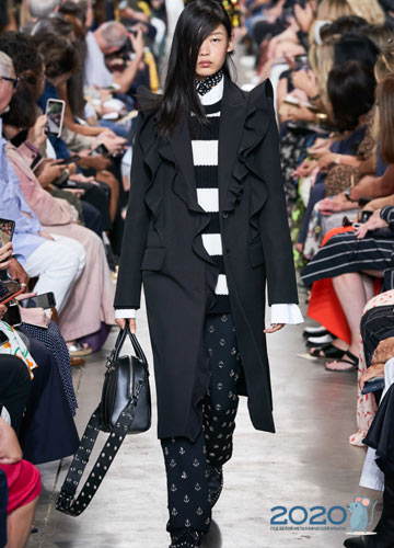 Die militärische Stilistik ist wieder in Mode. Aber statt strenger und prägnanter Mäntel und Trenchcoats sollten Sie im Jahr 2020 auf modische Frühlingsmäntel achten, die militärische Stilelemente wie Rüschen, Volants und voluminöse Ärmel mit Puffs kombinieren. Interessante Modelle zu solchen Themen wurden in ihrer Kollektion vom Modehaus Michael Kors vorgestellt.