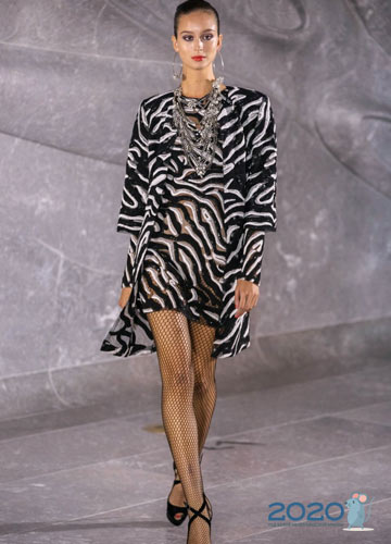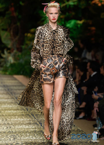 Solche Modelle finden Sie in den Kollektionen von Dolce & Gabbana. Und selbst Naeem Khan, der für seine luxuriösen Abendkleiderkollektionen bekannt ist, bietet in der neuen Saison modischen Frauen ein spektakuläres Set in einer Farbe, die animalischen Themen nahe kommt.