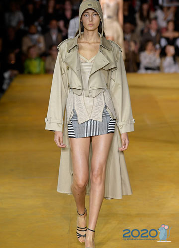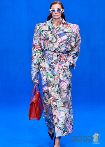 Unter den ungewöhnlichen Modellen von Blumenfarben ist der spektakuläre transparente Umhang von Versace hervorzuheben, der besonders dann relevant sein wird, wenn der Frühling 2020 seine eigene Kraft entfaltet und warme Gewitter im Mai die Erkältungen ersetzen.