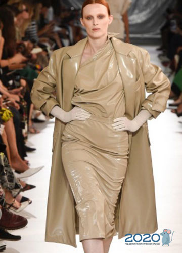 Einige Designer bieten an, schwarzes Leder von Kopf bis Fuß anzuziehen und Regenmäntel mit Hosenanzügen und Fliegeroveralls zu kombinieren. Viele Kollektionen präsentieren spektakuläre Modelle mit Imitationen unter der Haut von zarten Pastelltönen oder umgekehrt in leuchtenden und satten Farben.