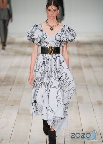 Der bedingungslose Trend des Jahres 2020 wird das Modell „Baby-Dol“ sein. Diese Kategorie umfasst kurze Kleider mit offenem Oberteil und einem flauschigen mehrschichtigen Rock, die dem Bild eine kindisch-schelmische Note verleihen.