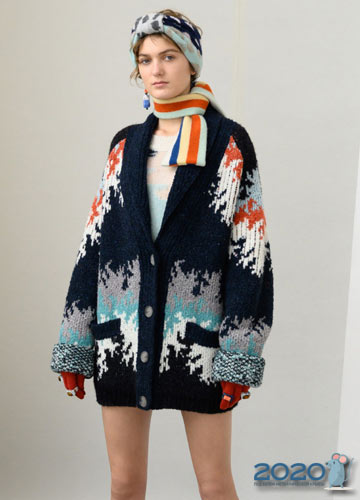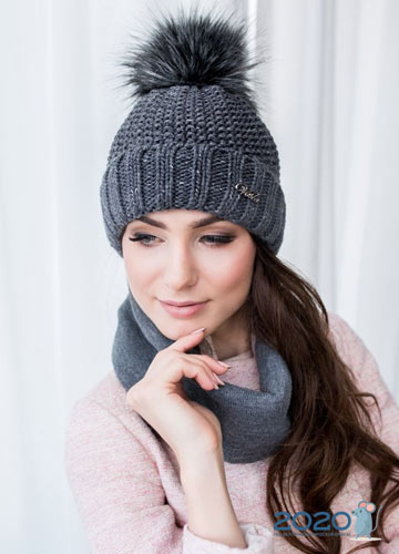 Strickmützen in der Herbst-Winter-Saison 2019-2020 sind natürlich auch Produkte im Oversize-Stil, die in der Regel 1,5-2 mal größer sind als der Kopf. Artikel aus Melangegarn sehen sehr stylisch aus, zu denen man tragen muss gestrickter Schal im Ton.