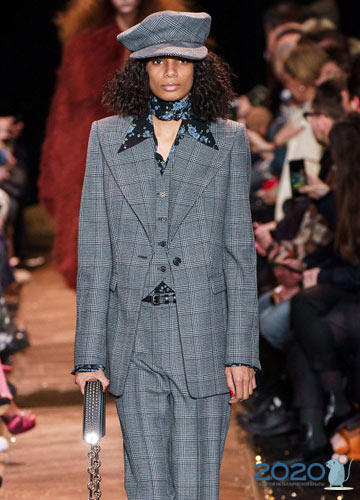 Modische Hüte für die Herbst-Winter-Saison 2019-2020, wie auf dem Foto zu sehen, sind auch isolierte Mützen aus Tweed, Kaschmir und Fell mit einem kurzen glatten Flor. Sie können solche Hüte mit einem luxuriösen Pelzmantel auf dem Boden oder mit einem eleganten Mantel im klassischen Schnitt tragen.