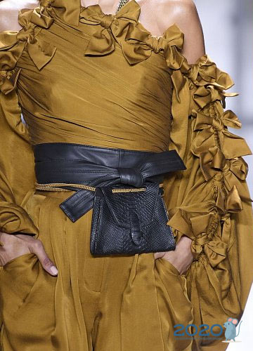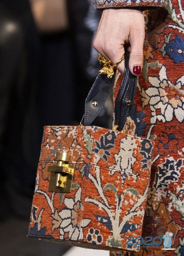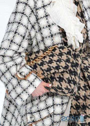 Interessante Textilmodelle wurden auf den Laufstegen von Dior, Oscar de la Renta, Chanel, Fendi, Michael Kors, Coach präsentiert. Es ist erwähnenswert, dass die Modetrends im Jahr 2020 auf einem einzigen Druck für die Tasche und stattdessen für die Kleidung fortgesetzt werden, was auf dem Foto deutlich zu sehen ist.