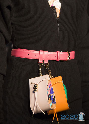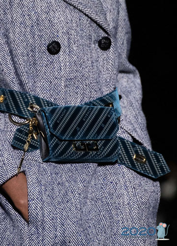 Das Thema Miniatur-Taillengeldbörsen wurde 2020 von vielen Couturiers fortgesetzt. Interessante Modelle gibt es also bei Max Mara, Burberry, Roberto Cavalli, Fendi, Chanel Valentino, Givenchy et al.