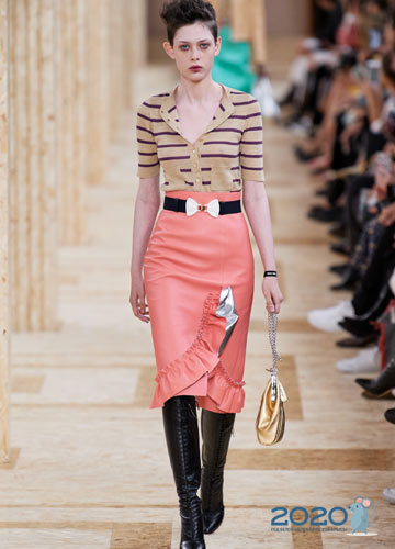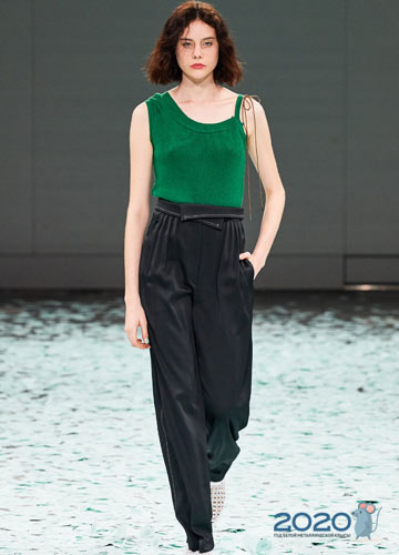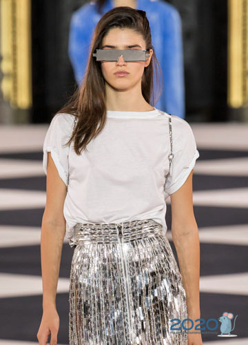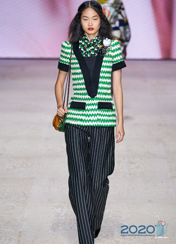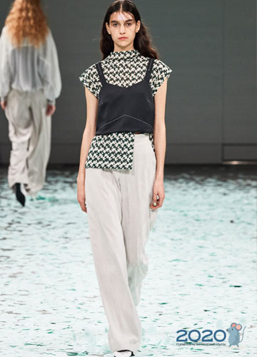 Tiefer Ausschnitt ist der Trend von 2020 und bei T-Shirts ist dieser Modetrend auch uninterpretiert. So präsentierte Louis Vuitton auf dem Laufsteg ein stilvolles Modell in weißen und grünen Streifen, und Miu Miu bietet an, einen einladend angelehnten Ausschnitt zu kreieren, um den zusätzlichen Knopf zu lösen.