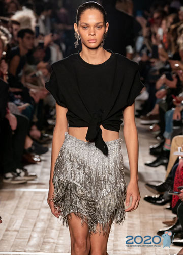 Trendtransparenz wird in diesem Frühjahr nicht nur in modischen Röcken und luxuriösen Abendkleidern verwirklicht. Viele Designer kündigten einen weiteren Trend bei ihren modischen Schleifen an - ein transparentes Oberteil, das sich nicht nur über Leinen in Kontrastfarben tragen lässt, sondern auch ganz ohne. Dies sind die Schleifen, die auf den Laufstegen von Beautiful People und Nina Ricci präsentiert werden. Monets Designer bieten eine zurückhaltendere Jugendversion an, bei der die Transparenz durch Netzeinsätze umgesetzt wird. Gleichzeitig finden Sie in Online-Shops viele transparente T-Shirts mit einer Vielzahl von Stickereien, wie auf dem Foto.