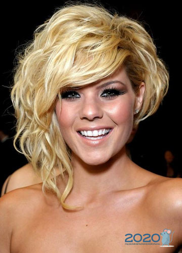 Besitzer von Haaren, die für sich genommen leicht lockig sind, sollten sich die universelle kurze Kaskade genauer ansehen. In diesem Fall rahmen abgestufte Locken das Gesicht mit weichen Locken ein, die dem Bild einen Hauch von Weichheit und Romantik verleihen.