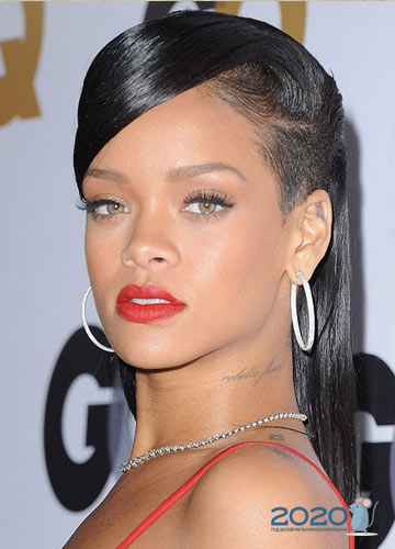Eine weitere originelle Idee für Besitzer von dicken langen Haaren ist der geschnittene Whisky. Ein solcher Haarschnitt sieht besonders originell aus, wenn Sie Haare in einem Pferdeschwanz sammeln, in Zöpfen flechten oder einfach auf eine Seite werfen. Und für einen maximalen Effekt können Sie kreative Zeichnungen auf dem beschnittenen Teil oder der Bildschirmverfärbung erstellen.