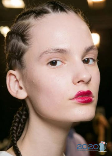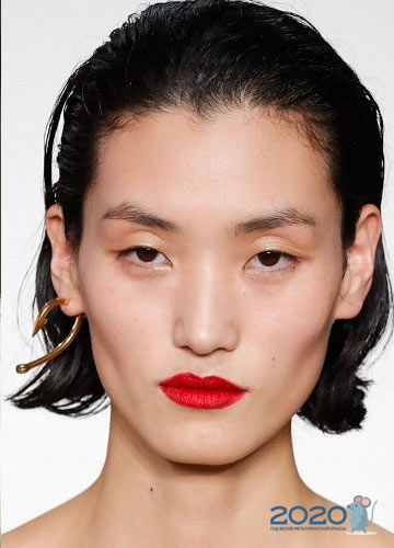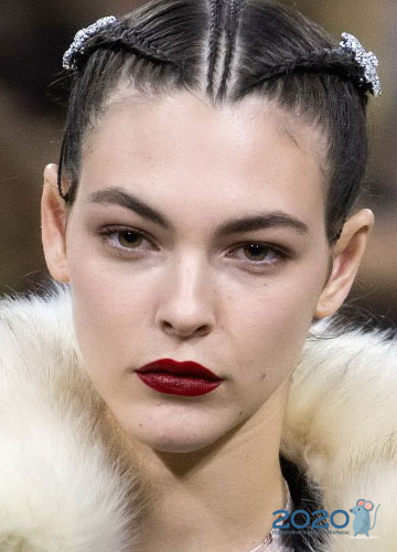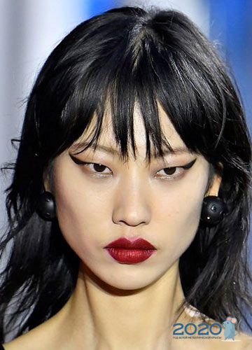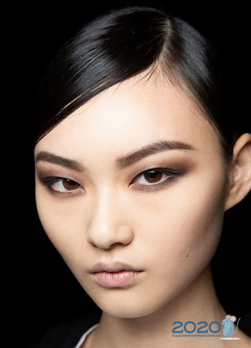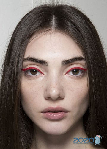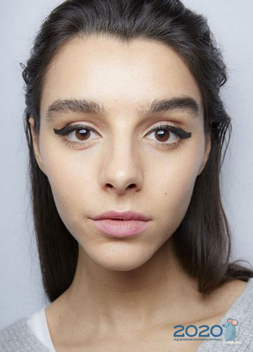 Die meisten Designer bei der Auswahl von Make-up für Modelle vertreten modische Bilderbevorzugte neutrale Naturtöne. Bei den meisten Shows der Herbst-Winter-Saison 2019-2020 konnte man Make-up mit einem Schwerpunkt auf den Augen sehen. Um den gewünschten Effekt zu erzielen, verwendeten Maskenbildner: Wimpern mit der Wirkung von "Spinnenbeinen", eine Vielzahl von Pfeilen sowie Schatten leuchtender Farben in Kombination mit blassen, fast farblosen Augenbrauen.