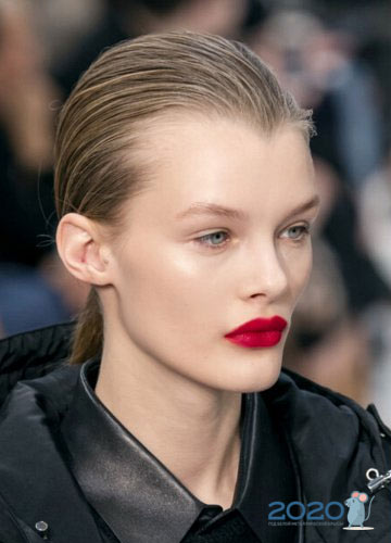 Modetrends für die Herbst-Winter-Saison 2010-2020 schreiben Make-up mit einem Schwerpunkt entweder auf den Augen oder den Lippen vor.Wenn Sie sich für eine helle, gesättigte Lippenstiftfarbe entscheiden, sollten Sie auf Farbschatten und kräftige Pfeile verzichten.