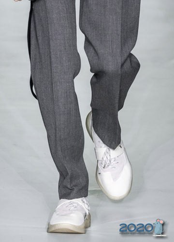 Der Trend des Jahres 2020 werden weiße Schuhe und Stiefel sein. Trotz einiger Schwierigkeiten bei der Pflege solcher Schuhe werden viele Fashionistas in der kommenden Saison diesen Trend unterstützen, denn weiße Schuhe werden mit beliebigen Nuancen kombiniert und verleihen dem Männerbild einen besonderen Charme.
