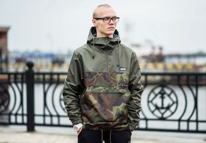 Praktische Anhänger wählen immer noch Anoraks. Anfangs waren Jacken aus dichtem winddichtem Gewebe nur in Sportbekleidungskollektionen zu sehen. Aber heute, Modelle, die über dem Kopf getragen werden, biete ich Luxusmarken an - Louis Vuitton, Prada und andere.