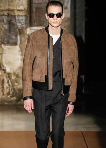 Edles Wildleder wird in der Herrenmode nicht an Beliebtheit verlieren, denn Produkte aus diesem Material sind sehr effektiv und passen problemlos in jeden Look. Der Höhepunkt des Männerbildes von 2019-2020 kann ein ungewöhnlicher Amethyst-, Pflaumen- oder Lavendel-Bomber sein, obwohl die meisten Vertreter der stärkeren Hälfte nach wie vor traditionelle Naturtöne wie auf dem Foto bevorzugen.