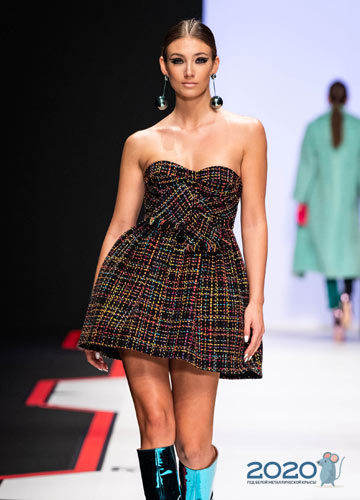 In der kommenden Saison bleibt die Mode für spektakuläre Kleinwagen erhalten. Wenn Sie ein Kleid in diesem Stil für das neue Jahr 2020 auswählen, empfehlen die Stylisten, brillante Modelle zu bevorzugen oder ein verfügbares Produkt mit eigenen Händen in ein neues zu verwandeln, das reichlich mit Pailletten, Strasssteinen oder Pelzdekor verziert ist.