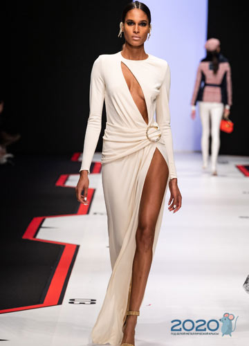 Im Vorfeld von 2020 versprechen sie, sehr beliebte lange Neujahrskleider mit hohem Schnitt zu werden, die ein elegantes weibliches Bein zeigen. Solche spektakulären Bögen in ihren Kollektionen präsentierten Naeem Khan, Zuhair Murad, Dolce & Gabbana, Dior und andere bekannte Trendsetter.