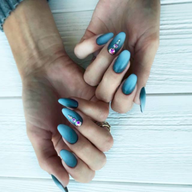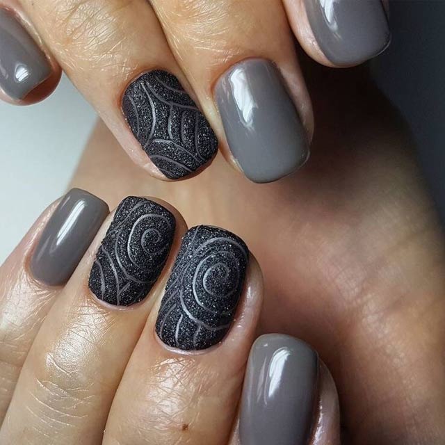 Experimentieren Sie mit Texturen, nachdem Sie eine einfarbige Lösung bevorzugt haben. Neil-Art sieht sehr schön aus und kombiniert matte und glänzende Texturen mit absolut identischem Farbton.