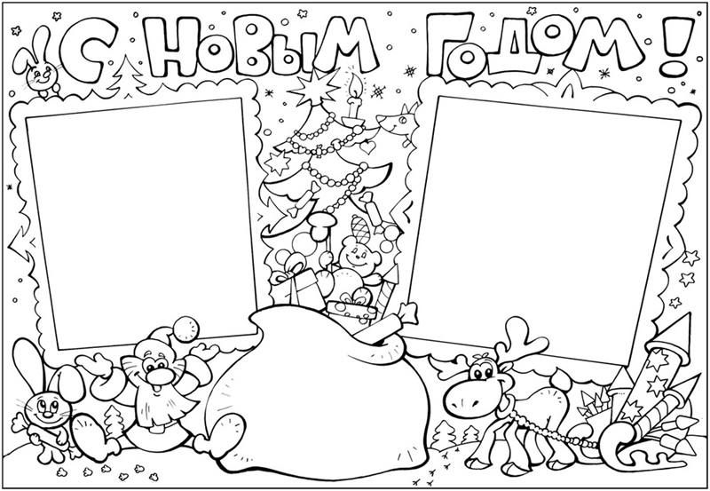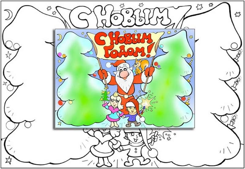 - Wandzeitung Färbung. Ideal für kollektive Kreativität bei der Feier des neuen Jahres. Auf das Papier werden schwarzweiße Leerzeichen geklebt, Kinder und geladene Gäste malen die Bilder aus. Das gemeinsam erarbeitete Ergebnis der Kreativität wird nach dem letzten Strich an der Wand sichtbar.
