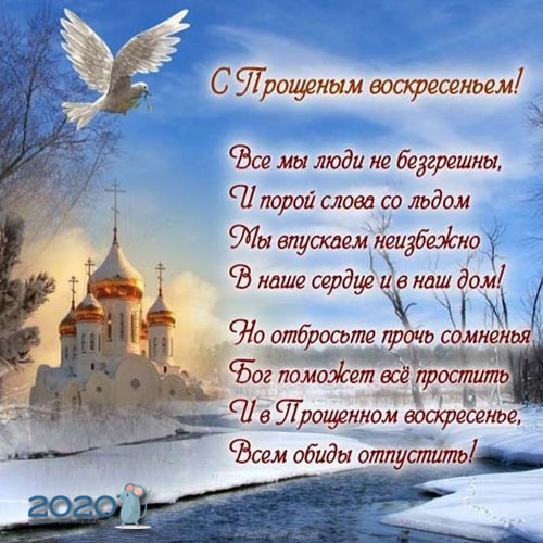 Lesen Sie die christlichen Traditionen - wir gratulieren Ihnen am Verzeihungssonntag mit Versen und Postkarten in verschiedenen Formaten, die Ihnen helfen werden, sich bei Verwandten, Freunden und Kollegen im Jahr 2020 zu entschuldigen.