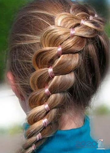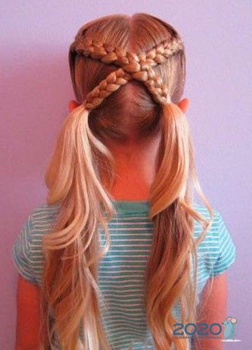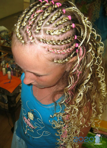 Frisuren, bestehend aus einem komplizierten Geflecht von Zöpfen, erfordern zwar viel Geschick vom Friseur, sehen aber wirklich toll aus! Solche Möglichkeiten garantieren der kleinen Prinzessin universelle Aufmerksamkeit und Freude.