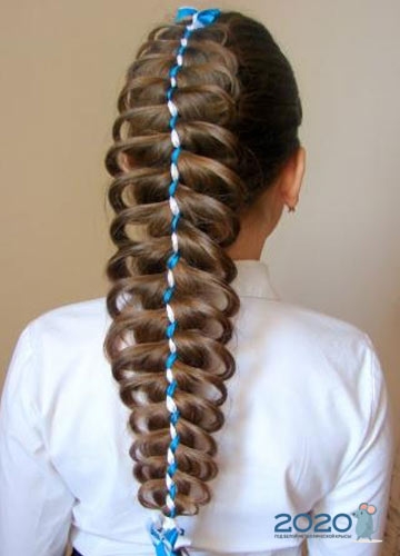 Für das ältere Mädchen für das neue Jahr 2020 können Sie Frisuren mit einer Locke anbieten, die natürliche Locken oder Feinchemie imitiert.