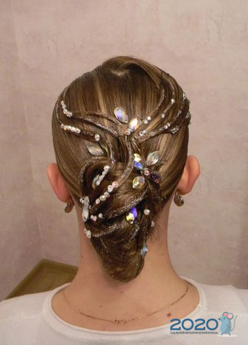 Es ist besser, ein solches Bild mit einem stilvollen Diadem, einem modischen Reifen oder einer spektakulären Haarspange zu ergänzen.