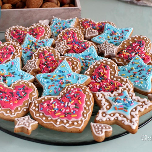Während die Lebkuchenplätzchen abkühlen, bereiten Sie die Zuckerglasur vor. Das Protein mit Pulver und Kakao mit einem Mixer verquirlen.Das Gebäck dekorieren und am festlichen Tisch servieren. Falls gewünscht, können Sie farbige Streusel verwenden.