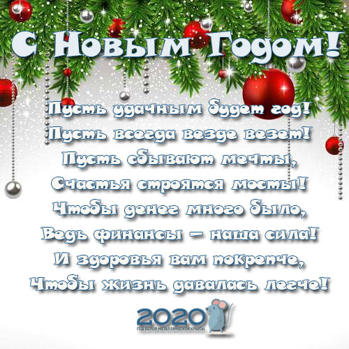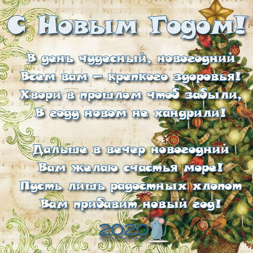 Wir brauchen kreative Ideen, wie wir Freunden, Verwandten und Freunden zum neuen Jahr 2020 gratulieren können - wir bieten an, kurze Neujahrsgedichte für SMS und schöne Glückwunschgedichte mit herzlichen Wünschen zu sammeln sowie digitale Postkarten herunterzuladen, die für das Jahr der Ratte relevant sind.
