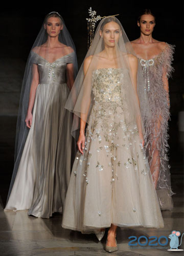 Wichtig! Brautkleider finden Sie auch in den Kollektionen anderer Designer, es reicht aus, Fotos von Shows Herbst-Winter 2019-2020 oder Frühjahr-Sommer-Angebote des kommenden Jahres zu überprüfen.