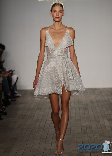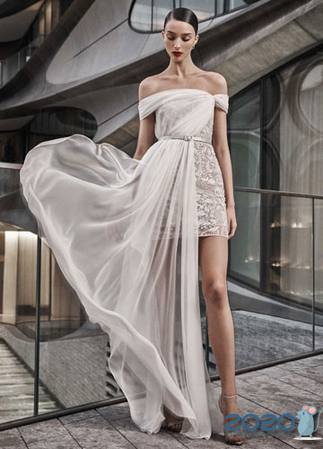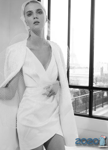 Wenn Sie Stereotypen beiseite werfen möchten, können Sie Ihre Wahl auf einem spektakulären kurzen Outfit beenden. In der Saison 2020 bieten viele namhafte Couturiers solche Optionen an, was bedeutet, dass sie sicher als trendy gelten können.