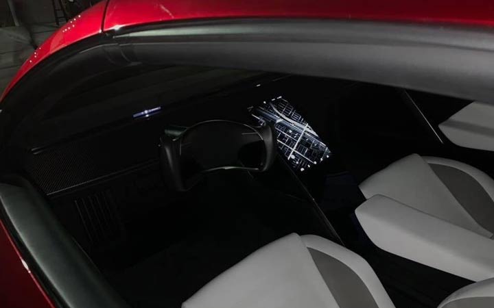 Verändern Sie das Erscheinungsbild eines Sportwagens und verwandeln Sie ihn in ein Cabriolet, möglicherweise aufgrund der Demontage des leicht abnehmbaren Glasdaches. In diesem Fall kann das entfernte Dach frei im Kofferraum platziert werden. Eine solche Transformation unterstreicht den ungewöhnlichen Tesla-Elektroplan.