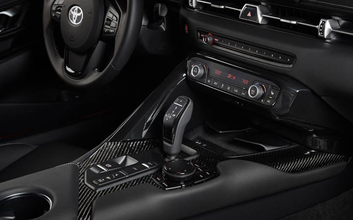 Wie es sich für einen klassischen Sportwagen gehört, erhielt die Toyota Supra-Limousine 2019 eine Zweisitzerleistung. Die Innenarchitektur trägt auch den hohen dynamischen Eigenschaften des Fahrzeugs Rechnung.