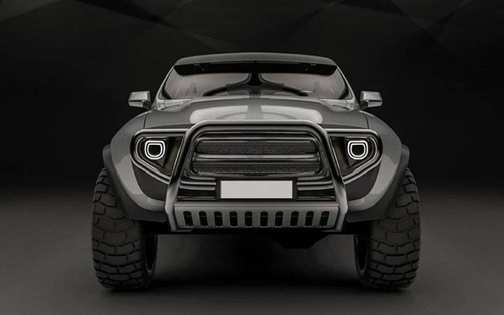 - kompakte Bauweise der vorderen unteren Lufteinlässe und Vorhandensein von zwei Seiten mit eingebauten Nebelscheinwerfern;