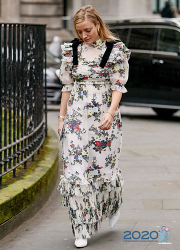 Die Mode 2019-2020 betont Weiblichkeit, Anmut und Romantik, was bedeutet, dass die Garderobe jeder Frau ein schönes Kleid haben sollte, dessen Stil und Farbe den Charakter und die Individualität der Frau unterstreichen.